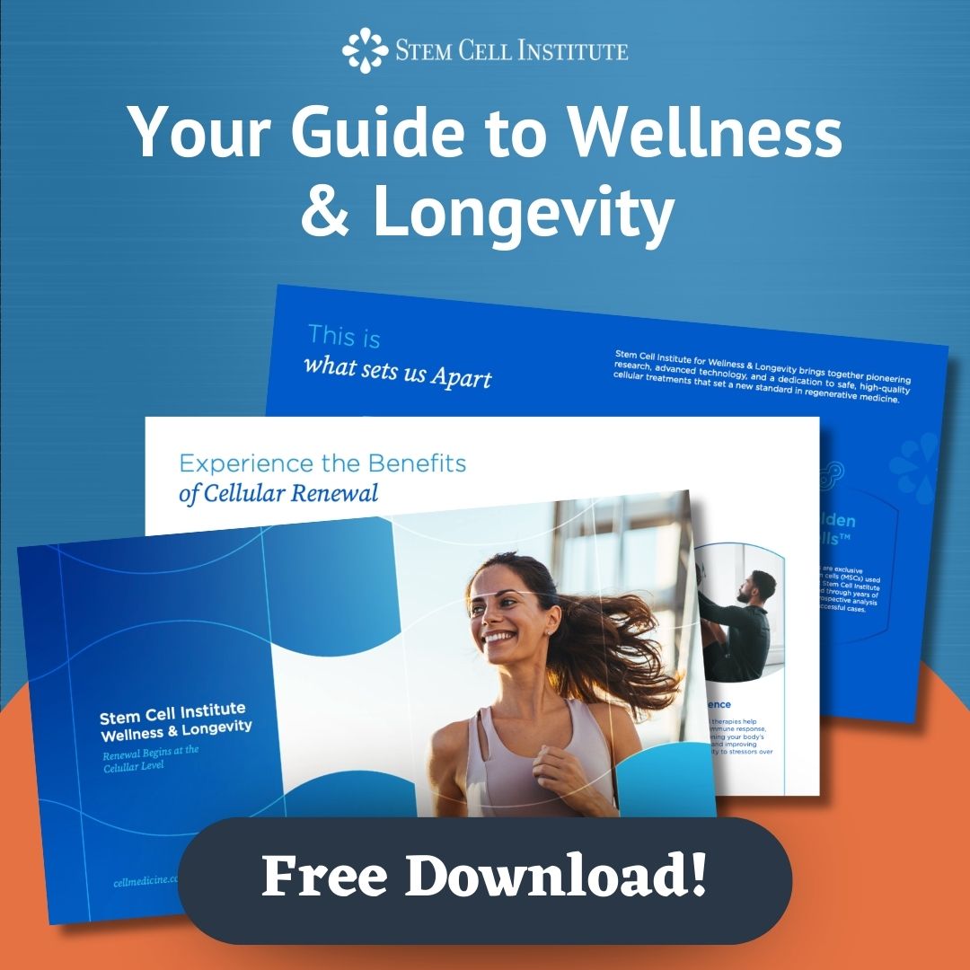 Human umbilical cord tissue-derived mesenchymal stem cells (hUCT-MSCs), like the Golden Cells™ we use at Stem Cell Institute, secrete molecules that have been shown to reduce inflammation, modulate the immune system, and promote tissue healing. Clinical trials have demonstrated safety for immune and inflammatory conditions as well as skin regeneration and rejuvenation.